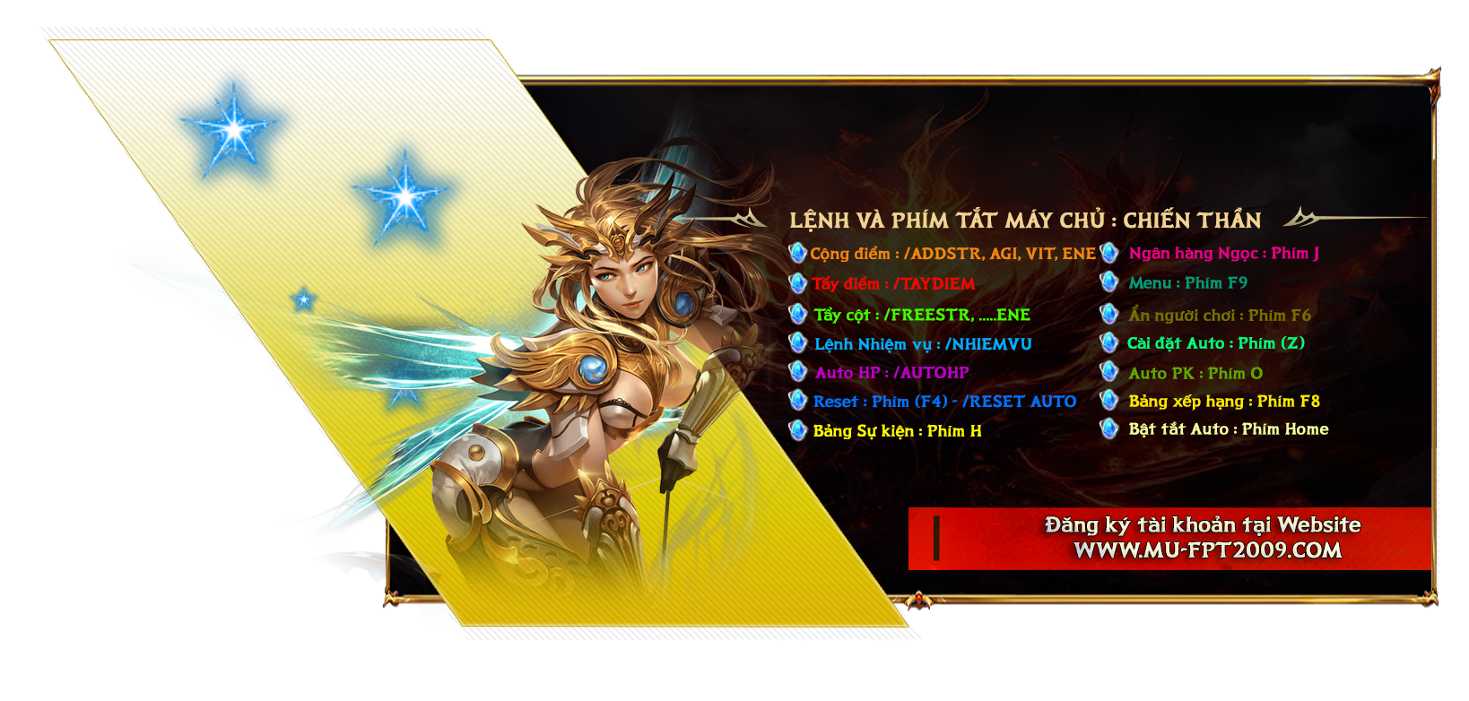 Cuồng Phong Đao, Đao Sinh Mệnh, Q.Trượng Đại Vương, Nỏ Thánh Nữ, Gậy Thiên Sứ, Khuyển Xích Quỷ, Nắm Đấm Quyền Lực